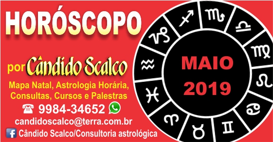 Previsões para Maio 2019 ÁRIES – Procure não ser impulsivo(a) ao falar. As suas palavras se espalham como vento e tomam outros contextos. Não se deixe levar pela confusão mental e emocional. O pensamento lógico e racional deve prevalecer. TOURO – Com o Sol em seu signo, surge uma nova jornada na vida. Para iniciar […]