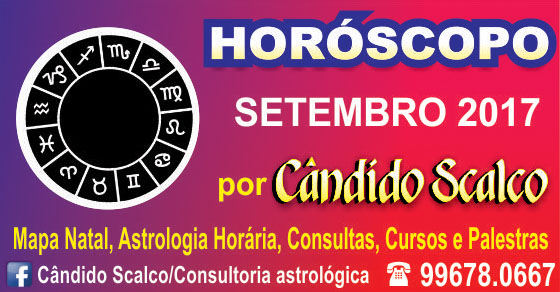 Previsões para Setembro 2017 ÁRIES – Fase agitada e construtiva. Muita energia e ideias novas. Só não deixe de ter paciência para formar uma base sólida e segura. TOURO – Você está seguro e confortável. Aproveite a Lua nova do dia 20/09 para iniciar algum estudo que fará você aprimorar o seu trabalho. GÊMEOS […]