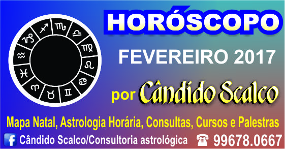 Previsões para Fevereiro 2017 ÁRIES – Preste atenção no trabalho e na saúde. O estômago está sensível, mas logo tudo se resolverá. Alguém do sexo feminino pode auxiliar na carreira. TOURO –Tudo tranquilo. Tão tranquilo que você pode investir com segurança nas parcerias profissionais e no relacionamento amoroso. GÊMEOS – Irritação e nervosismo, ânsia de querer ir adiante […]