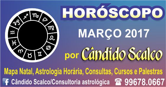 Previsões para Março 2017 ÁRIES – Planejamento e ação com segurança e responsabilidade. Momento propício para concretizar projetos. Cuidado apenas com os exageros. TOURO – Romantismo e imaginação. Procure usar a criatividade na área profissional. O momento é favorável. GÊMEOS – Organize o pensamento para tomar um rumo definido. Você está girando no mesmo lugar. O momento […]