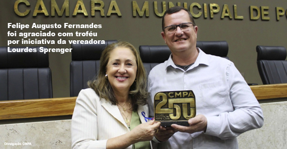 Felipe Augusto Fernandes recebe Troféu Câmara 250 anos No dia 6 de novembro, a Câmara Municipal de Porto Alegre entregou o Troféu Câmara 250 Anos para homenageados indicados pelos parlamentares. Entre as personalidades que receberam a honraria, destaque para o ex-governador Olívio Dutra, os ex-vereadores Reginaldo Pujol, Paulinho Motorista, Jussara Cony e Raul Carrion, além […]