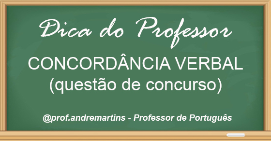 Veja esta questão recente de concurso público em que é cobrada CONCORDÂNCIA VERBAL. (QUESTÃO DE CONCURSO) Marque a alternativa em que há erro na concordância verbal: A) Havia cadeiras suficientes na sala.B) Vende-se verduras frescas.C) Este café é para nós tomarmos.D) Quantos de nós também já sofreram? Comentário e gabarito: A resposta é Letra B, […]
