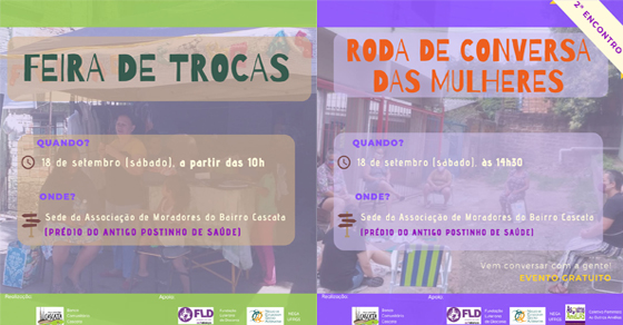 O Banco Comunitário Cascata, uma iniciativa para promover o desenvolvimento local, justo e solidário, com gerenciamento feito pela própria comunidade, realiza, no dia 18 de setembro, sábado, a partir das 10h, uma Feira de Trocas na qual a comunidade pode levar roupas, utensílios domésticos, calçados, alimentos e brinquedos para trocar com os vizinhos. À tarde, […]