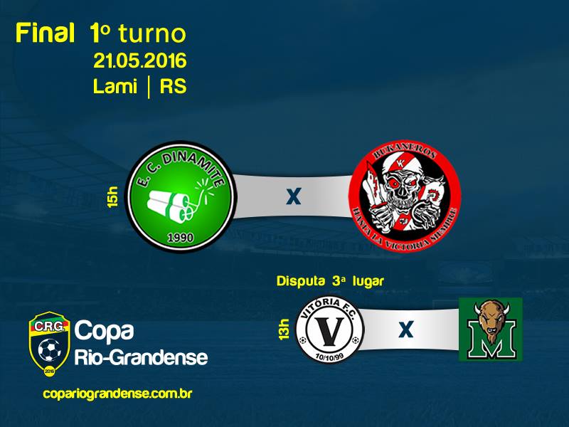 Após dois meses de disputa, chega ao final o 1º turno da Copa Rio-Grandense de Futebol Amador. A final – Dinamite x Bukaneros – está marcada para sábado (20 de maio), às 15h, no Lami, Zona Sul de Porto Alegre. Já a disputa do 3º lugar, entre Montana e Vitória, será às 13h. Os finalistas […]