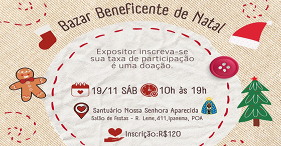 Oportunidade solidária: bazar na zona sul No dia 19 de novembro das 10h às 19h o Educandário São João Batista promove no Salão de Festas do Santuário Nossa Senhora Aparecida – Rua Leme, 411, Ipanema em Porto Alegre – um Bazar Beneficente de Natal para angariar fundos para o tratamento e educação de crianças e […]