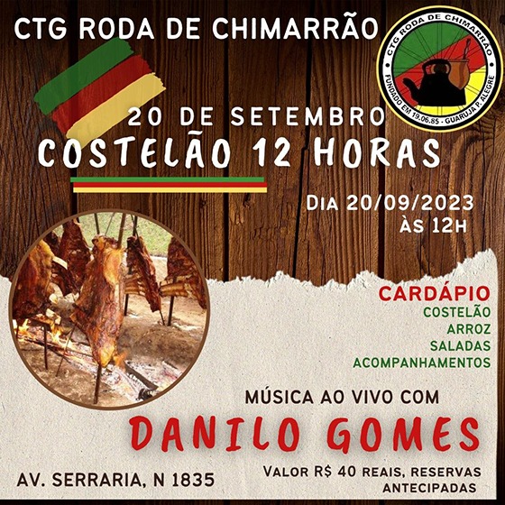 Durante o evento, que contará com apresentação de Danilo Gomes, também haverá arrecadação de donativos para os desabrigados Contando com a apresentação musical de Danilo Gomes, o CTG Roda de Chimarrão realiza em seu galpão crioulo, na Avenida da Serraria, 1835, evento que contará também com um costelão assado por 12 horas, incluindo, ainda, arroz, […]