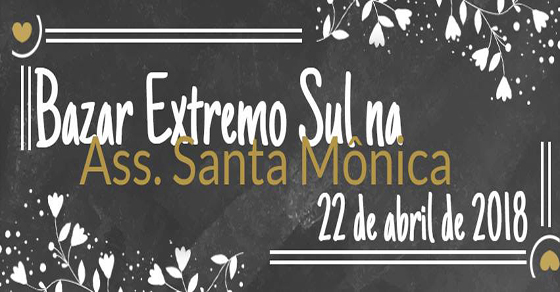 A sede da Associação Santa Mônica (Rua das Espatodeas, 171 – bairro Ponta Grossa), recebe, neste domingo (22 de abril), das 14h às 18h, o Bazar Extremo Sul, aberto ao público em geral. A grande variedade de produtos oferecidos pelos expositores inclui artesanato, brechó de roupas novas e usadas, cosméticos, gastronomia e muito mais. Leia […]