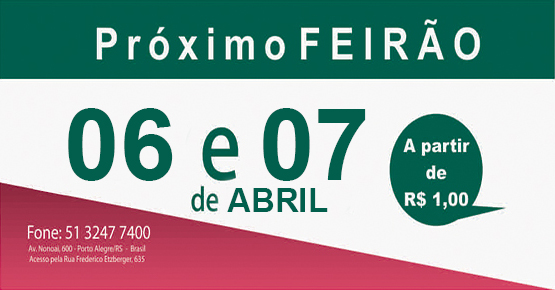 Nos dias 6 e 7 de abril, a Sociedade Porto-Alegrense de Auxílio aos Necessitados (Spaan), sediada na Avenida Nonoai, 600, realiza seu tradicional feirão, cuja renda é destinada à compra de remédios e alimentos para os idosos residentes no local. Na sexta-feira, o Feirão estará aberto das 9h às 12h e das 13h às 16h. Já no sábado, […]