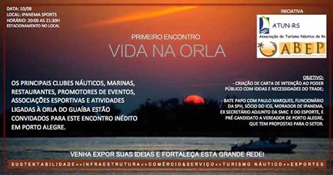 A ABEP (Associação Brasileira dos Esportes de Praia – #sorriaparaoguaiba) e a ATUN (Associação do Turismo Náutico do RS) vão promover o primeiro encontro Vida na Orla, no qual convidam alguns dos principais ícones e atores que trabalham ou se interessam pelo Guaíba para elaborar propostas conjuntas sobre uma ocupação positiva dos seus cerca de 72 Km […]
