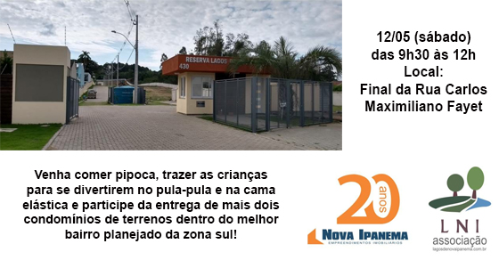 Brincadeiras para as crianças no pula-pula e na cama elástica e distribuição de pipocas são algumas das atividades oportunizadas para a comunidade, neste sábado (12 de abril), das 9h30 às 12h, durante a entrega de dois novos condomínios de terrenos da Nova Ipanema Empreendimentos Imobiliários na Zona Sul de Porto Alegre. As atividades gratuitas e […]