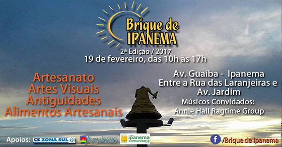 Em função da chuva no final de semana anterior, o Brique de Ipanema será realizado neste domingo (19 de fevereiro), das 10h às 17h, na Avenida Guaíba, entre a Rua das Laranjeiras e a Avenida Jardim. Em cerca de 40 bancas, são oferecidos itens de artesanato, alimentos funcionais, antiguidades e artes visuais, produzidos na Zona Sul de […]