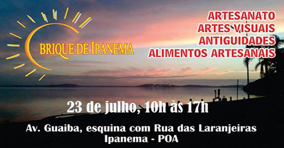 Os participantes do Brique de Ipanema realizarão duas edições do evento no mês de julho, em dois domingos, dias 9 e 23, das 10h às 17h. Na Avenida Guaíba, entre a Rua das Laranjeiras e a Avenida Jardim, moradores da Zona Sul de Porto Alegre expõem e comercializam as produções de Artesanato, Antiguidades, Alimentos Artesanais […]