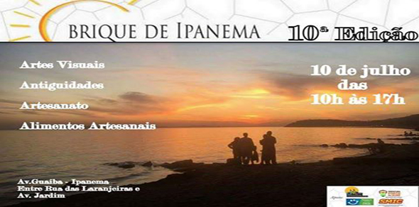 Neste domingo (10 de julho), das 10h às 17h, o Brique de Ipanema chega a sua 10ª edição. O evento, coordenado por Marcia Morales, é realizado pelos próprios participantes, que oferecem ao público, em 40 bancas, produtos de Alimentos Artesanais, Antiguidades, Artesanato e Artes Visuais. O brique é realizado, pelo menos uma vez por mês […]