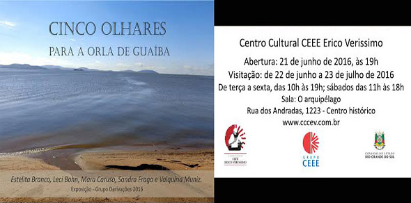O grupo Derivações iniciará a exposição CINCO OLHARES PARA A ORLA DE GUAÍBA, com abertura no dia 21 de junho, às 19h, no Centro Cultural CEEE – Érico Veríssimo. A exposição coletiva, coordenadas por Estelita Branco e Mara Caruso, mais as integrantes Leci Bhon, Sandra Fraga e Valquíria Muniz, mostra o registro das incursões das cinco […]