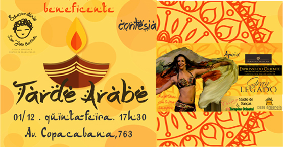 No dia 1 de dezembro, quinta-feira, às 17h30, na Av. Copacabana, 763 – Casa Amarela, senhoras da sociedade porto-alegrense promovem uma Tarde Árabe em prol das crianças e adolescentes com deficiências do Educandário São João Batista. À frente da organização do Evento estão Maria Beatriz Ferreira, Maria Eva Carvalho, Eveline Streck e Sandra Araújo, conselheiras […]