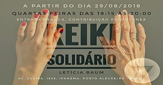 O Séu, espaço localizado na Avenida Guaíba, 1646, no bairro Ipanema, na Zona Sul de Porto Alegre, está oferecendo, a partir do dia 29 de agosto, sessões de Reiki Solidário, com Letícia Baum, todas as quartas-feiras, das 19h15 às 20h, com contribuição espontânea. O Reiki é uma prática que tem por base a crença na […]