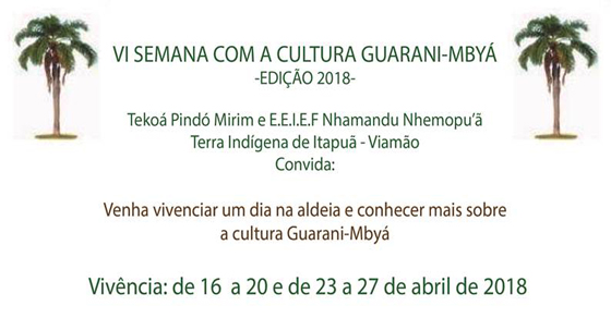 Um dia na aldeia promove semana de vivências com indígenas De 16 a 20 e de 23 a 27 de abril, a 6ª Semana com a Cultura Guarani-Mbyá possibilitará aos participantes conhecer um pouco mais sobre a cultura indígena. Em cada um dos dias do evento, haverá uma série de atividades com vivências […]