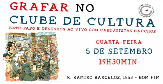 No dia 5 de setembro, várias gerações de cartunistas gaúchos vão estar reunidas no Clube de Cultura para expor seus trabalhos, trocar experiências, conversar com o público e, claro, desenhar. Organizado pela Grafar (Grafistas Associados do Rio Grande do Sul), que foi criada na década de 1980 para fortalecer o grafismo gaúcho, o evento é […]